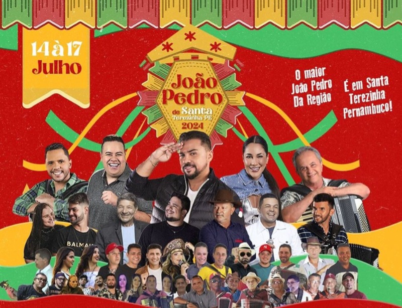 A Prefeitura de Santa Terezinha divulgou a programação oficial da edição 2024 do tradicional João Pedro. O evento, que será realizado entre os dias 14 e 17 de junho, vai contar com shows artísticos, apresentações culturais, danças, comidas típicas e muito forró.